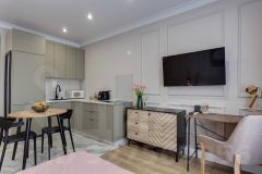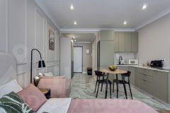 Представьте: вы просыпаетесь в современной студии с кондиционером, варите свежий кофе в капсульной машине и планируете день за удобным рабочим столом.