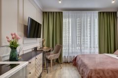 Вместимость: До 4 человек (двуспальная кровать 160/200 см + раскладной двуспальный диван).