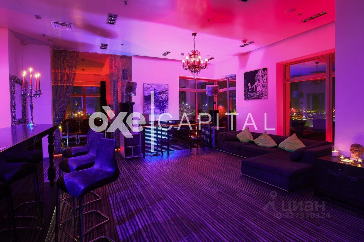 Планировка: две функционально спланированные зоны отдыха с итальянской мебелью, профессиональная барная стойка, концертная площадка со всем необходимым оборудованием (свет, звук, проектор, специально оборудованное место для диджея), гостевой санузел, ванна, гардеробная, просторная терраса с зоной отдыха и потрясающими панорамными видами на столицу.