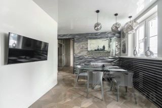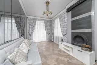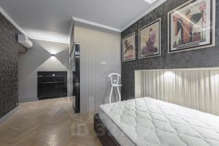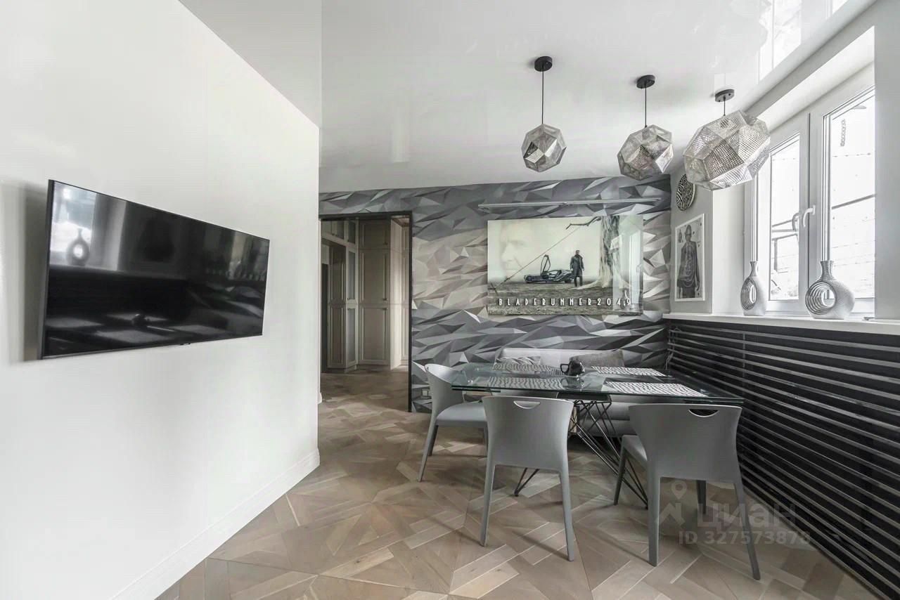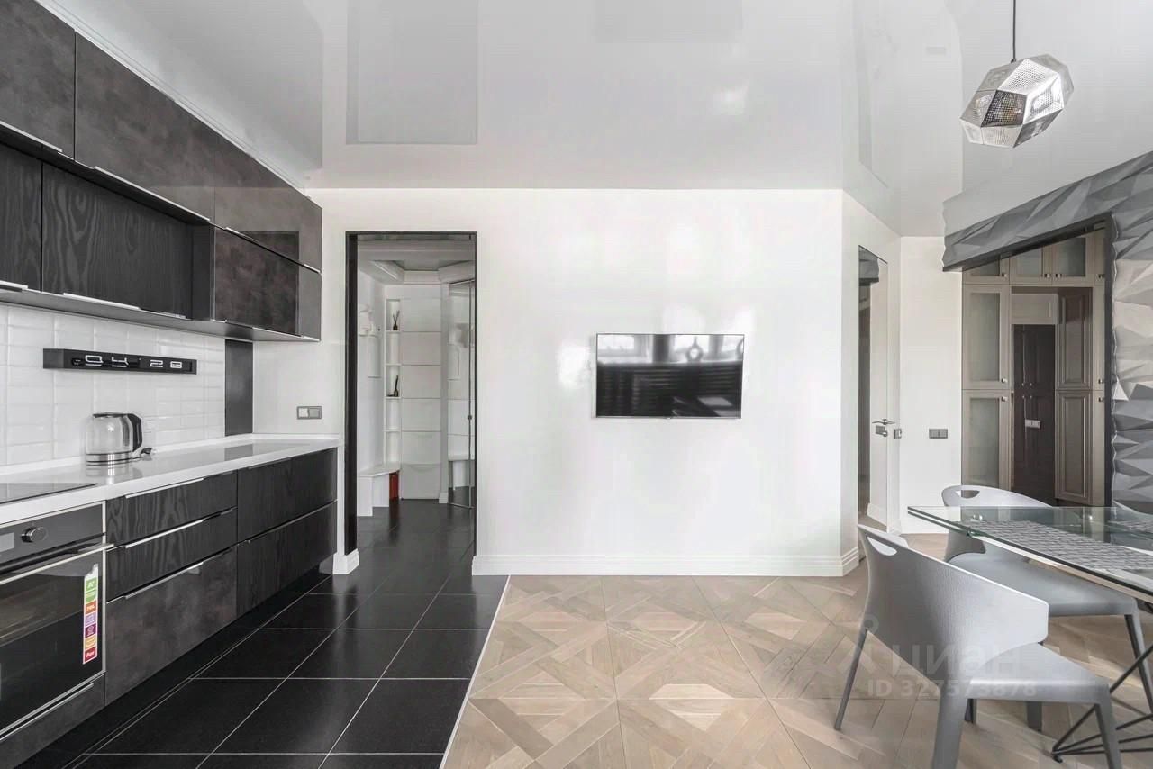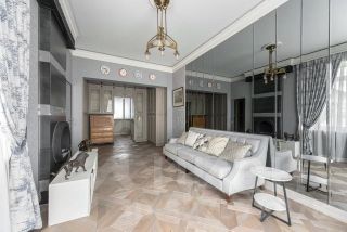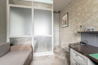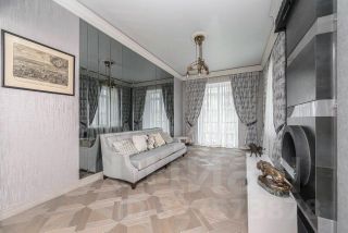 В квартире недавно выполнен современный ремонт, сочетающий в себе неоклассику и урбанистический стиль. Планировка включает кухню-столовую, гостиную, спальню с гардеробной, кабинет, совмещенный санузел с ванной, прихожую.
