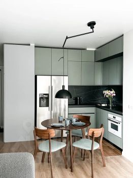 Бытовая техника: посудомоечная машина, кондиционер, стиральная машина, сушильная машина, холодильник, варочная панель, духовой шкаф, электрический чайник.