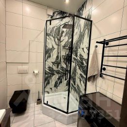 Санузел совмещённый, с современной душевой зоной.