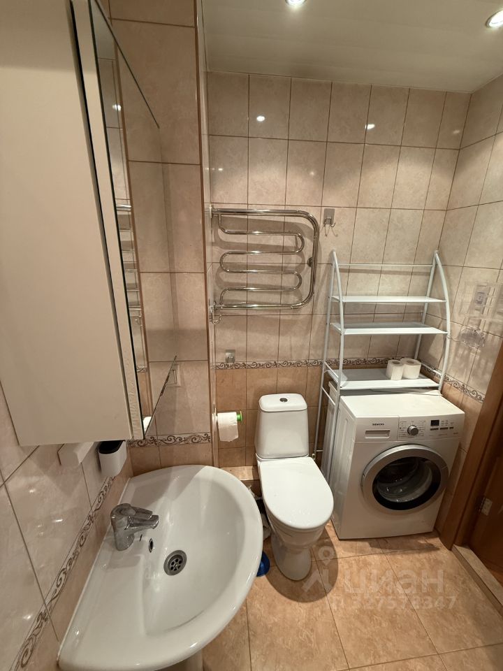В квартире выполнен косметический ремонт, есть вся необходимая мебель как на кухне, так и в комнате. Обстановка включает холодильник, телевизор и стиральную машину. Высота потолков составляет 2,64 метра, а окна выходят во двор, что обеспечивает тишину и уют. В квартире имеется совмещенный санузел с ванной, а также балкон.