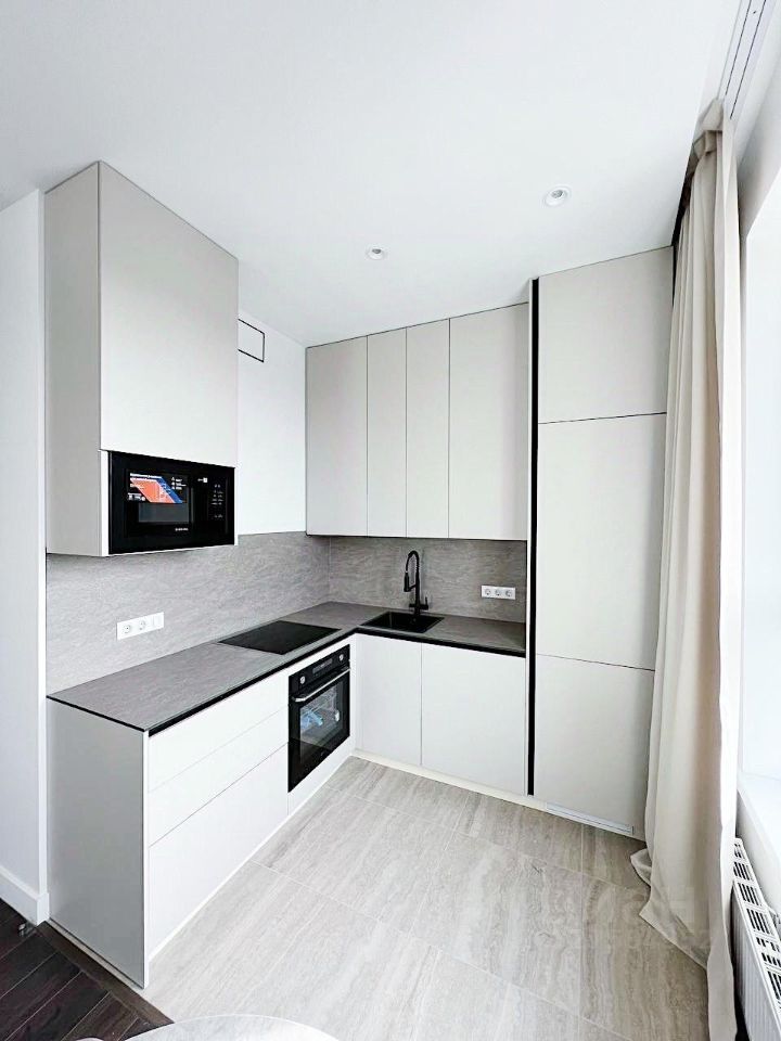 Кухня полностью укомплектована бытовой техникой: варочная панель, духовой шкаф, посудомоечная машина, микроволновая печь..
