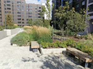 В ЖК работают пункты выдачи заказов Вайлдберриз и ОЗОН, аптека, магазины Пятерочка, Магнит и др. Двор без машин. Спортивные и детские площадки во дворе.