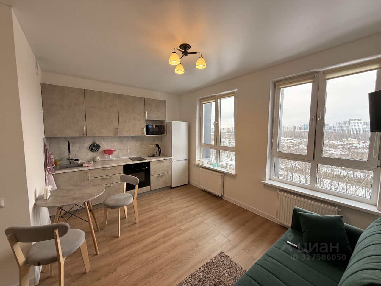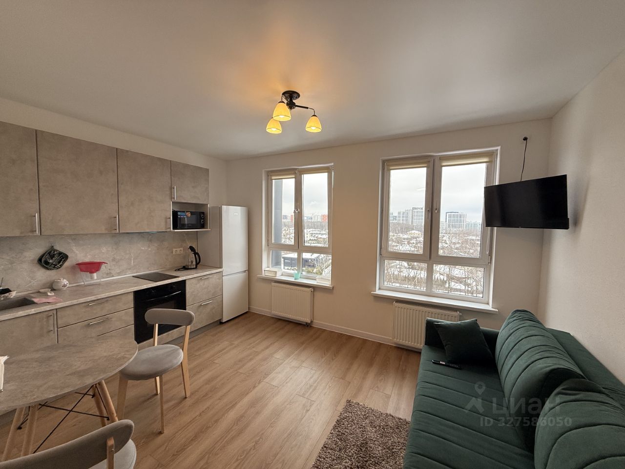 В квартире сделан евроремонт, что придаёт ей современный и стильный вид. В студии есть вся необходимая мебель, а также техника. Окна выходят на улицу и элитный коттеджный поселок Президент, поэтому в квартире всегда светло и уютно, а прекрасный вид никогда не будет загорожен чем-либо.