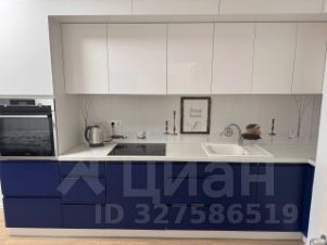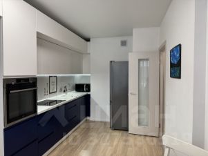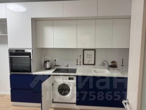Кухня-гостиная со встроенной техникой: индукционная варочная панель Ariston, встроенная стиральная машина Ariston, духовой шкаф AEG, двухкамерный холодильник Beko, микроволновая печь Samsung, электрический чайник. Качественная кухня, выполненная на заказ, большая зона хранения, обеденная зона. На кухне выход на лоджию с вместительным встроенным шкафом.