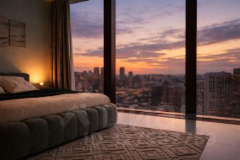 Дизайнерские апартаменты на 30 этаже в Москва-Сити с невероятным видом на закаты и настоящим аэрохоккеем.