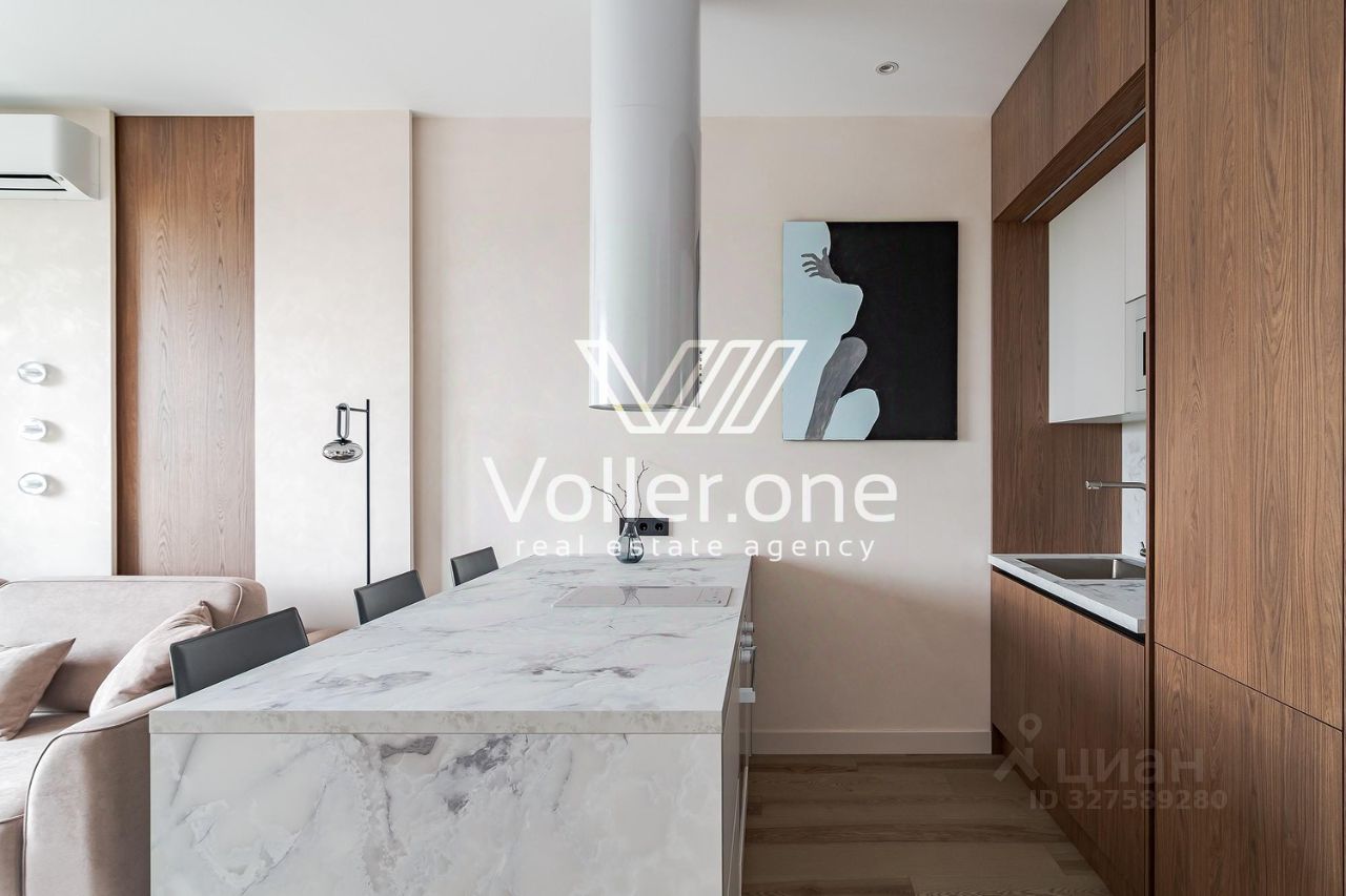 Стильная и элегантная квартира с дизайнерским ремонтом и панорамными окнами в жилом комплексе премиумкласса Hide. Из окон открывается завораживающий вид на зелёный парк и величественный главный корпус МГУ.
