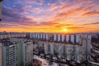 большие окна, много дневного света и красивый вид из окон.