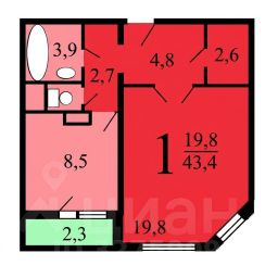 • большая комната 19,8 м² с эркерным окном