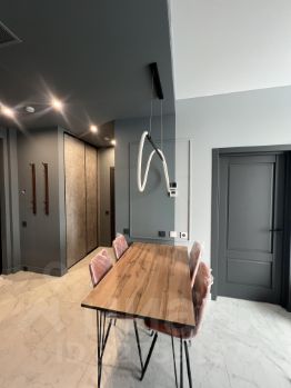 В квартире сделан дизайнерский ремонт, который продуман до мелочей, есть кондиционер и система рекуперация воздуха, теплый пол на кухне. В комнате установлена современная мебель и огромное количество мест для хранения, а кухня оснащена всей необходимой техникой:холодильник, посудомоечная машина, духовой шкаф, варочная индукционная панель, телевизор. В совмещённом санузле есть стиральная машина и ванна , где можно расслабиться после долгого дня.