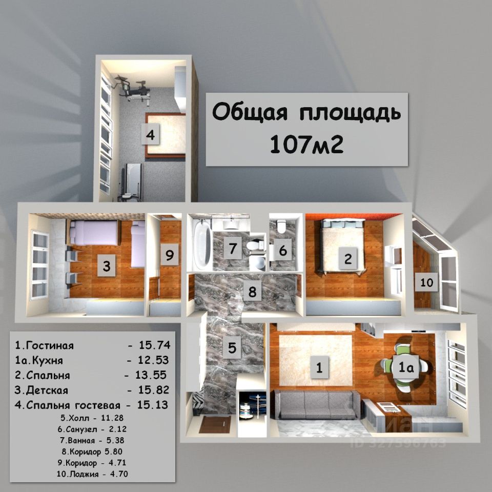 Сдаётся просторная 4-комнатная квартира общей площадью 107 кв. м в современном доме 2016 года постройки. Квартира расположена на 6 этаже 23-этажного монолитного здания. Высокие потолки 2,7 метра создают ощущение простора и света. Жилая площадь составляет 62 кв. м, а кухня порадует вас площадью в 12,53 кв. м. Окна выходят на улицу и во двор, что позволяет наслаждаться как динамикой города, так и тишиной внутреннего двора.