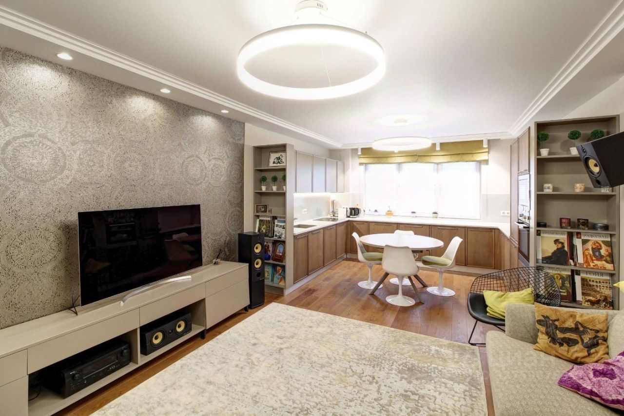 Интерьер квартиры выполнен по дизайнерскому проекту, что создаёт уютную и стильную атмосферу. В квартире есть вся необходимая мебель и техника: кондиционер, холодильник, посудомоечная машина, телевизор и стиральная машина. Санузлы раздельные, в ванной комнате установлена ванна. Лоджия станет отличным местом для отдыха на свежем воздухе. Для поддержания чистоты предусмотрен мусоропровод.