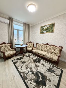 В квартире сделан современный евроремонт, установлена необходимая мебель на кухне и в комнате. Все комнаты оснащены техникой: холодильник, посудомоечная и стиральная машины, а также кондиционер для комфортного климата в любое время года. В ванной комнате есть ванна, где можно расслабиться после долгого дня. Один отдельный санузел обеспечивает удобство и приватность. ремонт новый! никто не жил! мебель также новая, кровати с подъёмным механизмом . большая, вместительная гардеробная комната.