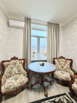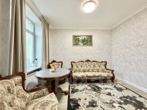 Сдается уютная трехкомнатная квартира с евроремонтом в Сталинском доме с красивой архитектурой . Общая площадь квартиры — 77 кв. м, жилая площадь — 36 кв. м, а кухня порадует просторными 12 кв. м. Квартира расположена на 5 этаже 8-этажного дома, что обеспечивает отличный вид из окон, которые выходят на улицу. Высокие потолки — 3.2 метра создают ощущение простора и свободы.
