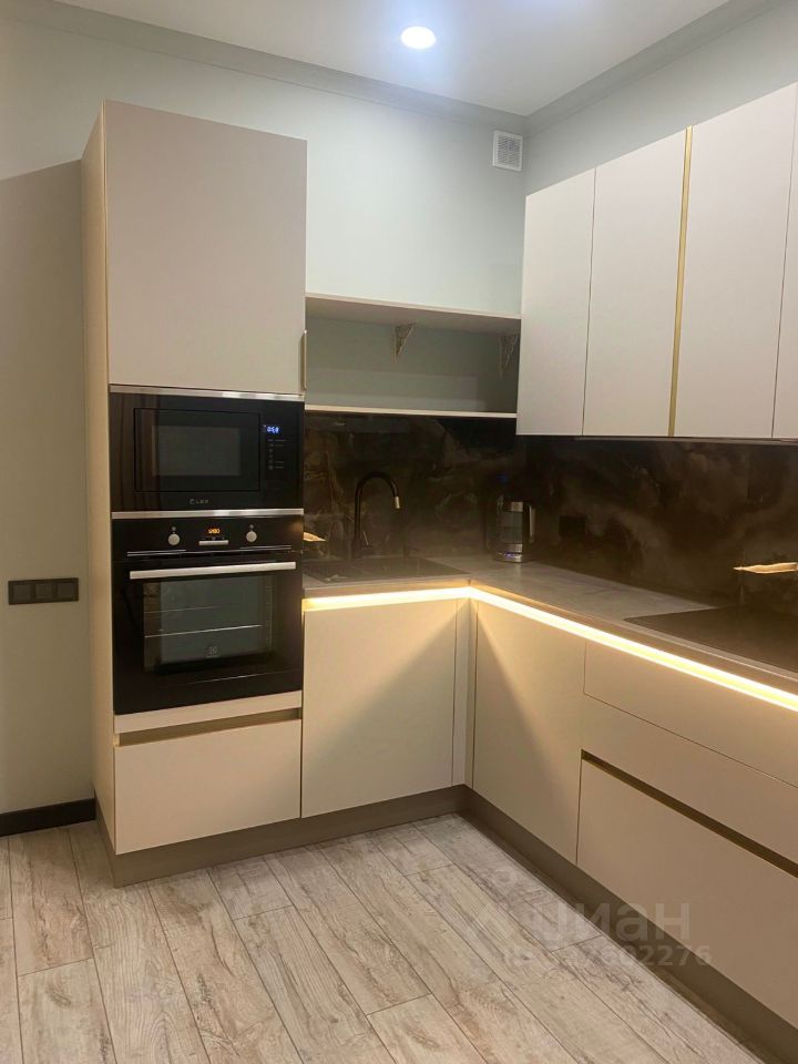 Предлагаем в аренду стильную однокомнатную квартиру с дизайнерским ремонтом, расположенную в современном доме 2019 года постройки. Общая площадь квартиры составляет 42 кв. м, из которых 20 кв. м — жилая зона, а кухня радует просторными 11 кв. м. Квартира находится на 20 этаже 20-этажного монолитного дома, откуда открывается приятный вид на двор. Высокие потолки в 3 метра добавляют ощущение простора и свободы.