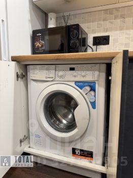 Полный комплект техники и аксессуаров: стиральная машина, пылесос, сушилка, утюг, чайник, базовая посуда.