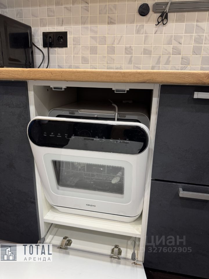 Просторная кухня со встроенной техникой: посудомоечная машина, индукционная плита, микроволновка, фильтр для воды.