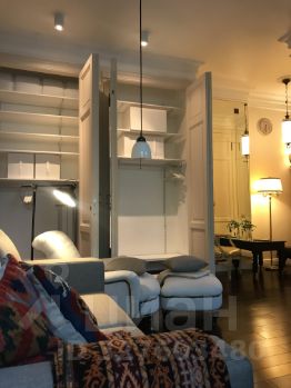Встроенный шкаф-кровать с удобным диваном и местами хранения, дизайнерское релакс-кресло с пуфом Thomas Eiffel, аутентичный китайский стеллаж и антикварное зеркало. Встроенная итальянская кухня с встроенной итальянской бытовой техникой, включая посудомоечную машину и кофемашину, полностью автоматическая газколонка Vaillant.