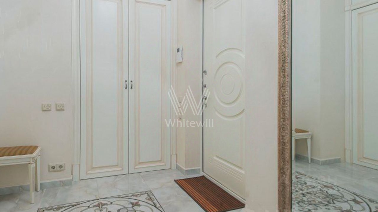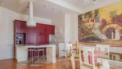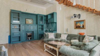 Двухуровневый пентхаус общей площадью 86 м² в реконструированном клубном доме в Мещанском районе. Квартира с 2-мя спальнями расположена на 4-м и 5-м этажах дома. Выполнен авторский ремонт в неоклассическом стиле, на полу покрытие из натурального дерева. Благодаря потолкам высотой 3,2 метра пространство наполнено светом. Окна выходят в тихий двор.