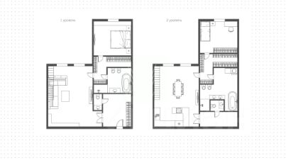 1-й уровень: гостиная, спальня с гардеробной и санузлом, гостевой санузел, холл. 2-й уровень: кухня-столовая, спальня с гардеробной и санузлом, гостевой санузел. Квартира оснащена всей необходимой мебелью и бытовой техникой. Установлены системы кондиционирования и подогрева полов. Возможна аренда машиноместа в подземном паркинге за дополнительную плату.