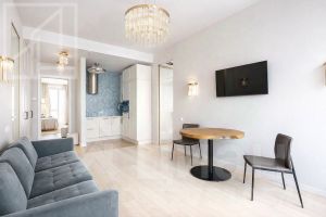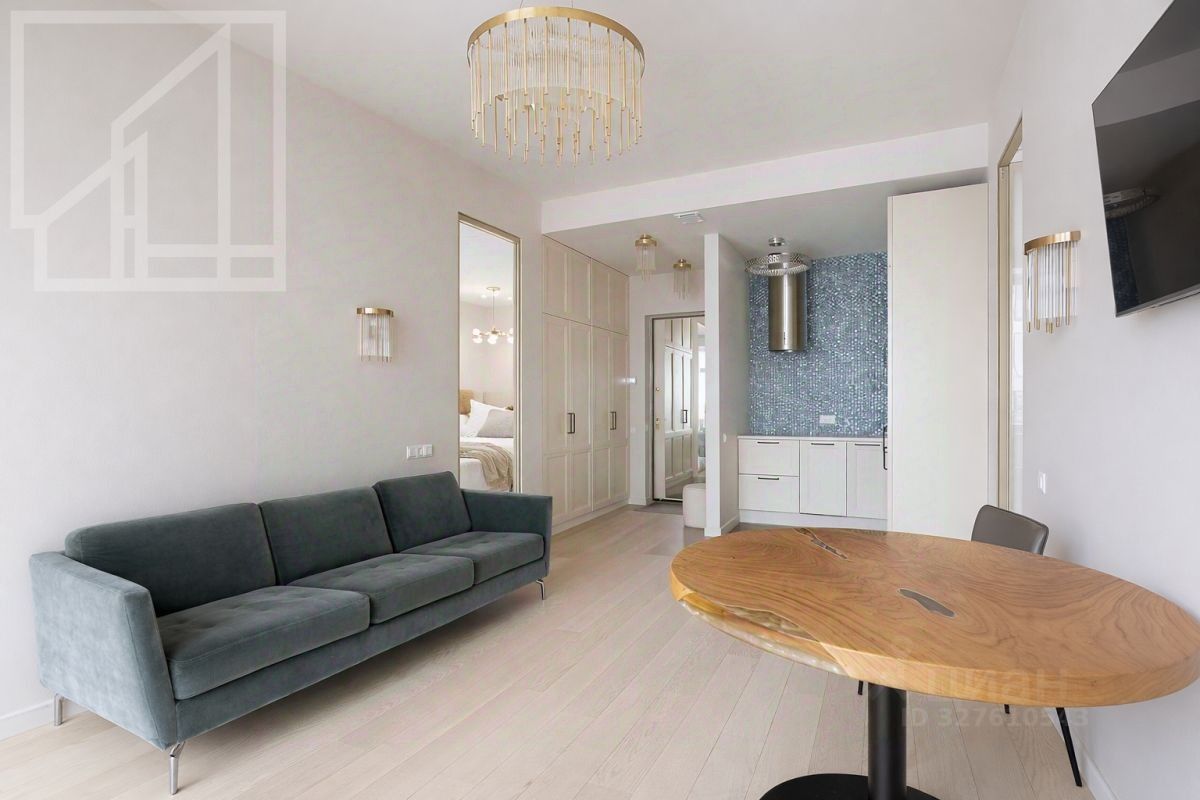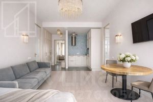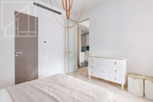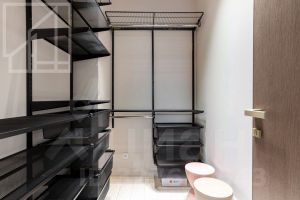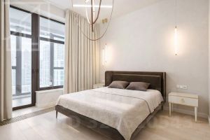 Планировка включает кухню-гостиную, 2 мастер-спальни с санузлами, гардеробную, балкон. Квартира полностью оснащена дорогой техникой, мебелью. Из окон открывается красивый вид.