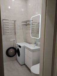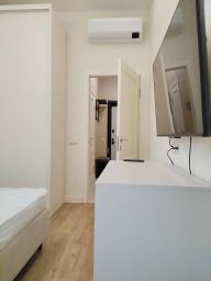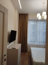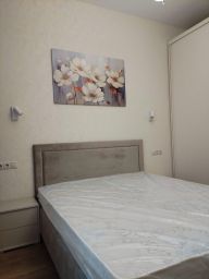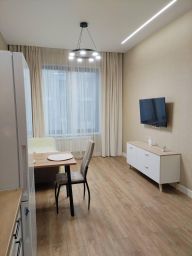 В квартире выполнен качественный евроремонт. Просторная кухня площадью 18 кв. м отлично оборудована: здесь есть вся необходимая мебель и техника, включая посудомоечную машину и холодильник. В комнате также имеется мебель, создающая атмосферу домашнего уюта. Установлены кондиционер и телевизор для вашего комфорта. Ванная комната совмещённая, с современной сантехникой и ванной.