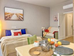Берите питомца с собой. В апартаментах возможно размещение с домашним любимцем. А ещё в распоряжении гостей банк и гладильные услуги.