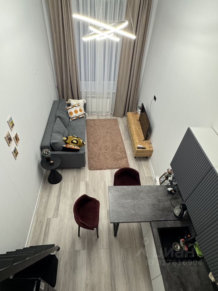Предлагаем в аренду стильные двухуровневые апартаменты площадью 25 кв. м с высокими потолками в 4 метра. Апартаменты расположены на первом этаже двухэтажного комплекса, окна выходят во двор.