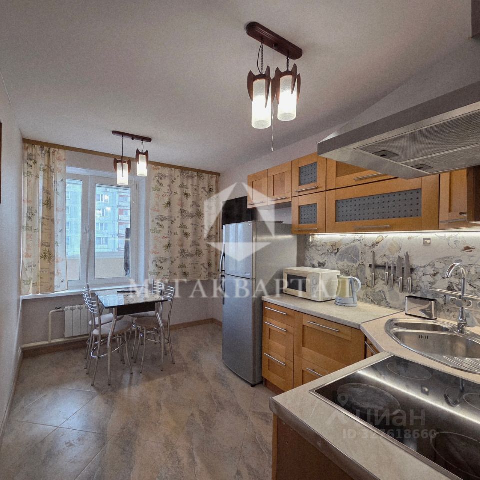 Квартира с евроремонтом, полностью меблирована и готова к заселению. Есть вся необходимая мебель и техника: холодильник, стиральная машина и телевизор и др. Санузел совмещённый, в ванной комнате установлена ванна. Есть выход на лоджию, где можно устроить уютное место для отдыха. Подключён интернет, поэтому можно оставаться на связи в любое время.