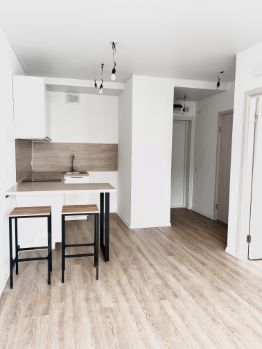 Сдается уютная однокомнатная квартира в современном жилом комплексе. Общая площадь — 36 кв. м, жилая — 30 кв. м. Квартира расположена на 27-м этаже из 38, поэтому из окон открывается прекрасный вид на город и уютный двор. До метро всего 6 минут пешком, что позволит быстро добраться до любой точки города.