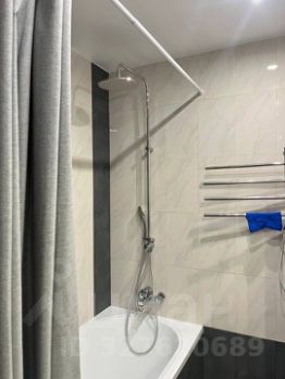 Санузел раздельный, с длинной ванной, высоким душем и биде.