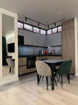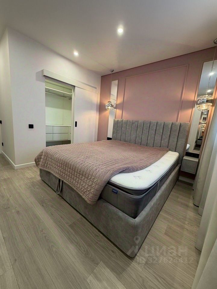 Кухня-гостиная оборудована всей необходимой мебелью и дорогостоящей техникой. Спальня с отдельной гардеробной, кроватью с ортопедическим матрасом и телевизором. Вторая спальня с большим, комфортным диваном и рабочей зоной. Совмещенный санузел. Гардеробная на входе. Везде в квартире шторы блэкаут для комфортного сна. Подогрев пола на балконе, входе и с/у.
