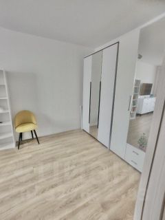 • Просторная комната (20 м²): огромный и очень удобный диван Moon, два вместительных шкафа, интерьерное кресло, телевизор Samsung, шкаф-витрина и комод. Для вашего удобства — робот-пылесос и кондиционер.
