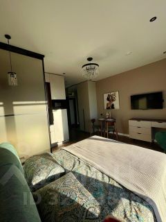 Современная студия с продуманным зонированием и комплектацией: