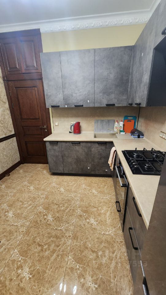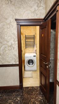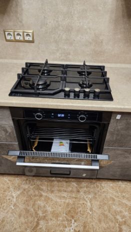 На кухне вся необходимая техника (посудомоечная машина, духовой шкаф, холодильник, микроволновая печь, мультиварка, чайник, тостер, кофеварка).
