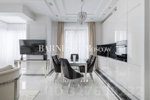 Апартамент с дизайнерской отделкой в современном стиле. Планировочным решением предусмотрены: просторная гостиная с зоной кухни, 3 спальни, 2 санузла, прихожая.