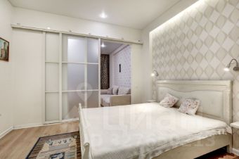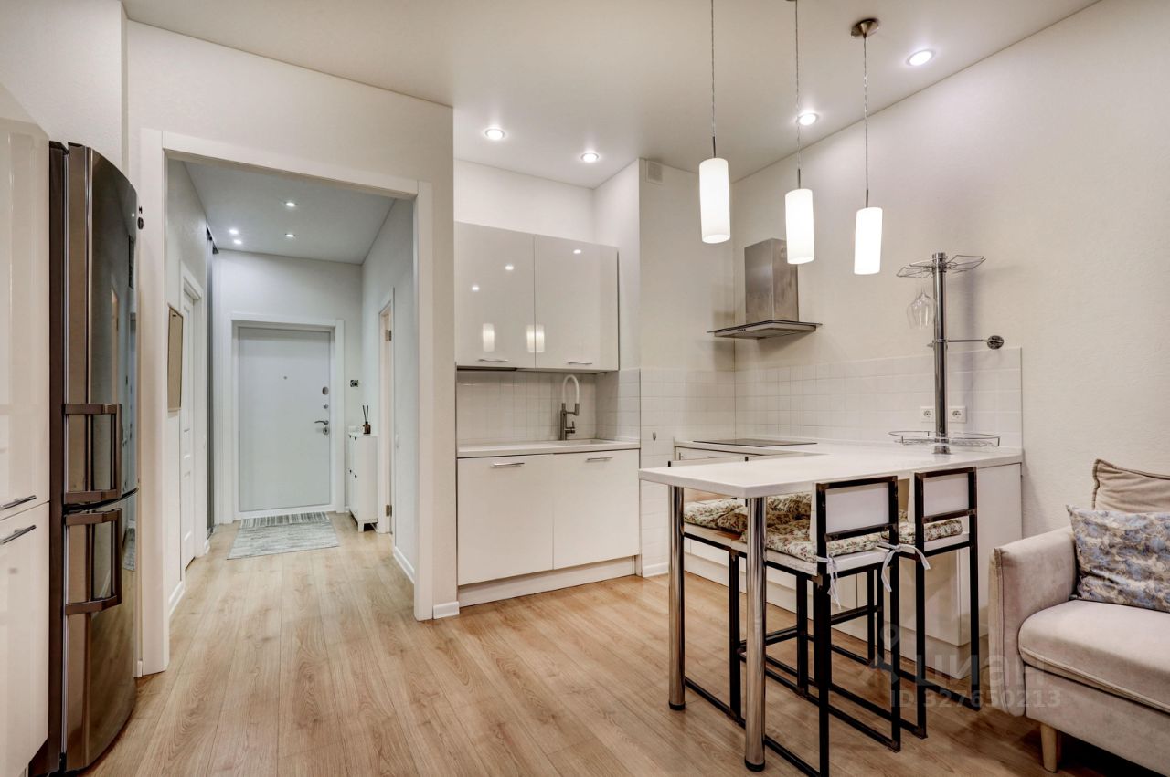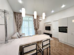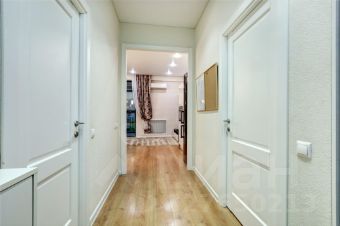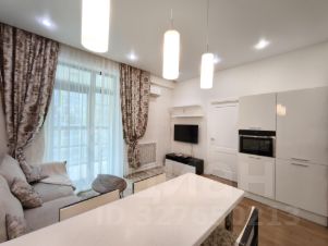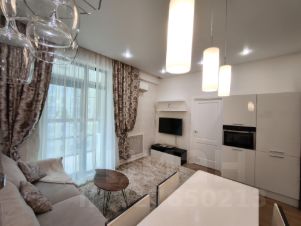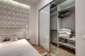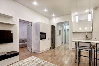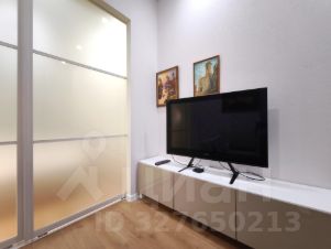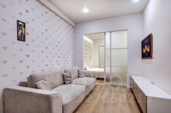 В долгосрочную аренду предлагается квартира студийной планировки с 2 проходными комнатами: кухня-гостиная 22 кв м и комната 10 кв м с диваном и TV (можно сделать детскую или кабинет) с раздвижной, стеклянной перегородкой, отделяющей от спального помещения (без окна) с вместительной гардеробной комнатой; просторный коридор со встроенным шкафом, большой совмещенный санузел.