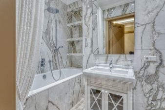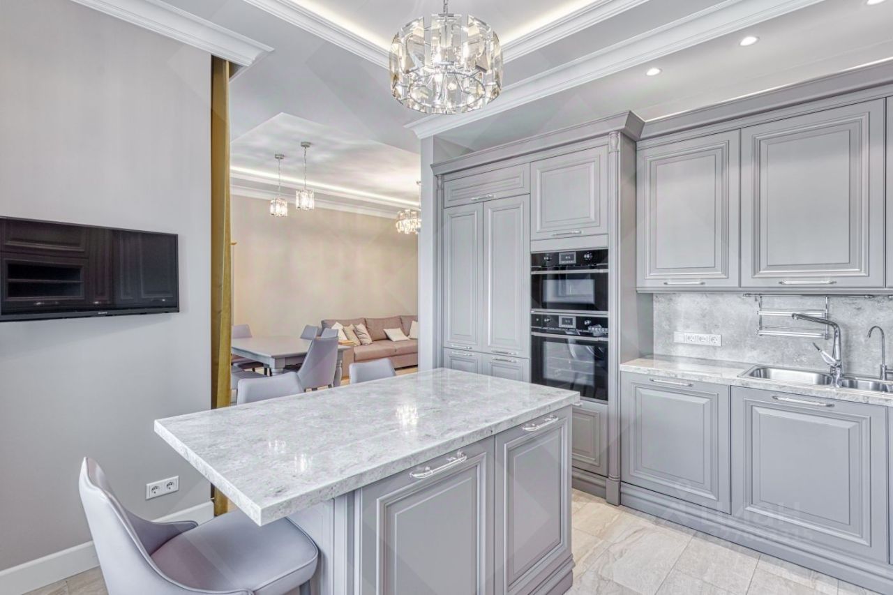 Отделка выполнена натуральными дорогостоящими европейскими материалами. Удобная функциональная планировка: большая гостиная, кухня оборудована итальянской мебелью и укомплектована бытовой техникой ведущих мировых производителей.