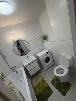 Просторная ванная комната оборудована как ванной, так и душевой кабиной. На кухне и в комнате имеется мебель.