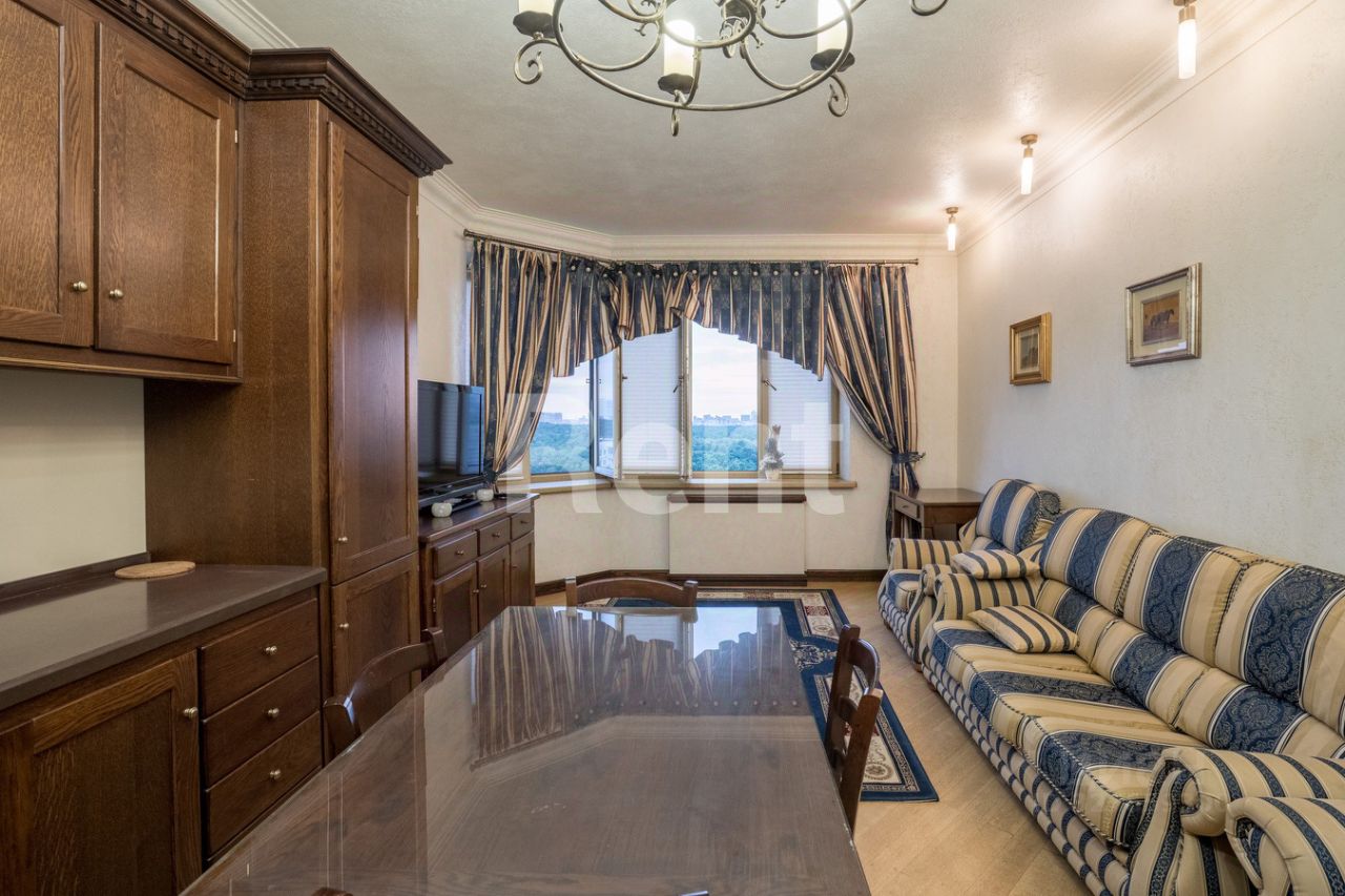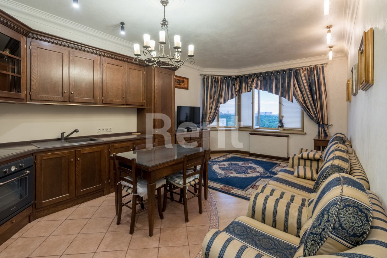 Средиземноморский пейзаж в прихожей, создающий ощущение солнечных летних дней, скрывает вместительную гардеробную и плавно перетекает в просторные комнаты. Роскошная гостиная объединена с прекрасно оборудованной кухней, а в лаконичной спальне есть выход на застекленную лоджию, откуда открывается замечательный вид на Тимирязевский лес.