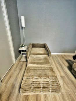 Квартира площадью 44 м2 (с учетом балкона), со смежными комнатами 16,8 и 10,1 м2, кухней 5,1 м2, раздельным санузлом, гардеробной. Окна на юго-восточную сторону, в зеленый двор, есть кондиционер. Квартира после ремонта, ещё никто не жил. На кухне: гарнитур с газовой варочной поверхностью, духовым шкафом, вытяжкой, холодильником, посудомоечной машиной. В комнатах: раскладные диван и кресло, корпусная мебель, телевизор, письменный стол, большой платяной шкаф, туалетный столик. Под конкретного арендатора рассматривается покупка спального места в маленькой комнате двуспальная кровать, детская кровать и т.д. Имеется оборудованная гардеробная, стиральная машина, пылесос, утюг, роутер с подключенным интернетом и цифровым tv и т.д. всё что нужно для комфортного проживания (подробнее при осмотре).