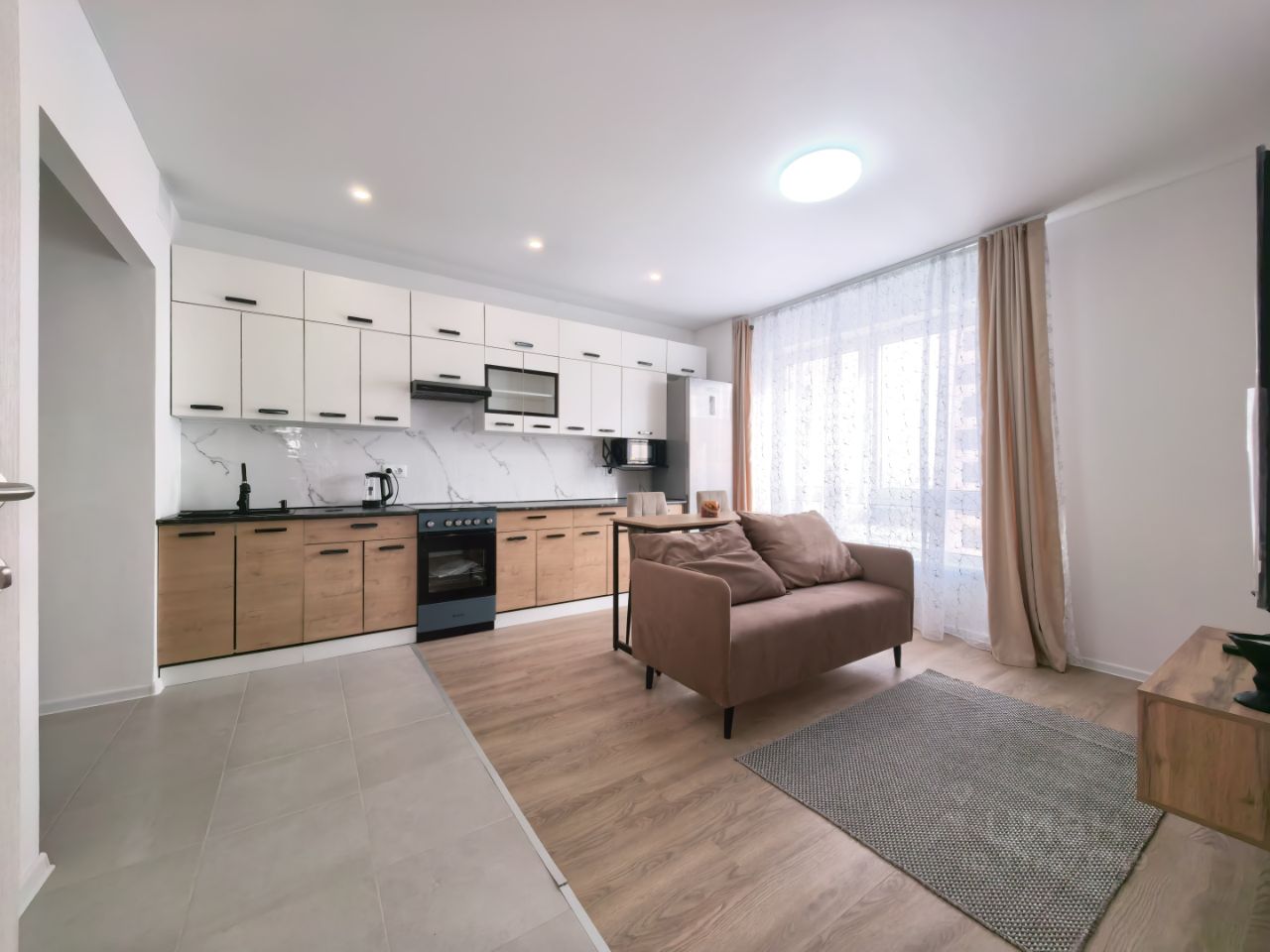 Квартира находится на 10 этаже и обладает евроремонтом, который придаёт ей современный и стильный вид. Полностью меблированная, она готова к заселению — вам не придётся тратить время и деньги на покупку мебели. Комнаты изолированные, что обеспечивает комфорт и уединение. Также в квартире есть всё необходимое для удобства: совмещенный санузел, холодильник и автоматическая стиральная машина. Высокоскоростной интернет позволит вам работать и отдыхать без перебоев.