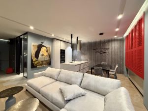 Предлагается в аренду уникальная квартира с душой и авторским ремонтом в современном стиле от известного и супер талантливого дизайнера, входящего в топ-10 дизайнеров России. Ремонт выполнен из высококачественных дорогих отделочных материалов, мебель на заказ из Италии, в наличии все необходимое для счастливой благословенной жизни, включая всю необходимую техника, включая посудомоечную машину, стиральную машину с сушкой, встроенную кофемашину и винный шкаф для радости и любви. Функциональная планировка квартиры включает в себя зоны Благо: очень просторную кухню-гостиную, две изолированные комнаты - спальню (с гардеробной и выходом на лоджию) и комнату, которую можно использовать как кабинет или детскую (фиолетовый диван раскладывается и имеет ортопедическое основание), два полноценных санузла для мужской и женской энергии с просторными душевыми. Но главное, что отличает пространство - его атмосфера. Квартира словно заряжена на успех и благополучие: каждый уголок пропитан энергией заботы и созидания. Вложены в этот ремонт не только лучшие материалы, но и душа, чтобы новые жильцы ощутили себя не просто арендаторами, а желанными гостями в доме, где им будет максимально комфортно и радостно жить. Уверены, что это пространство найдет своих идеальных, гармоничных людей.