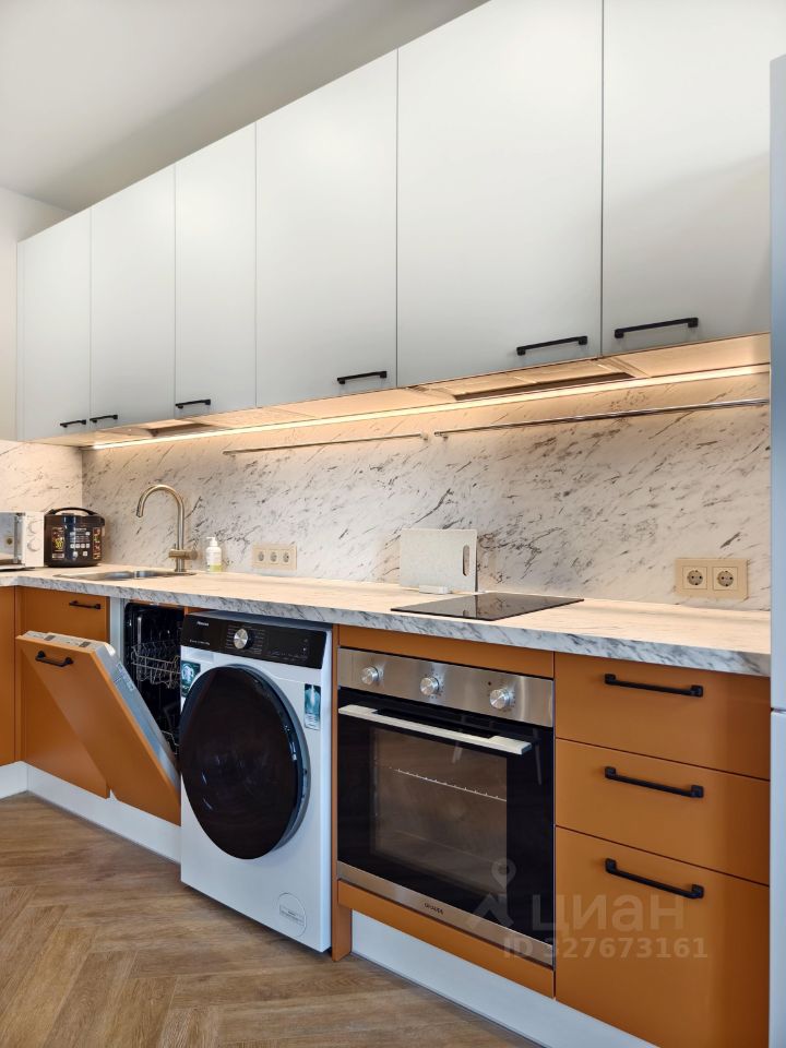 Есть всё необходимое для проживания: теплый пол в сан.узлах, кондиционеры, посудомоечная машина, телевизор, кофе-машина, мультиварка, микроволновая печь, стиральная машина с сушкой, датчики протечки и другое.