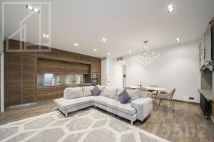 Планировка: просторная кухня-гостиная с обеденной зоной, три спальни, два совмещенных санузла с ванной и душевой кабиной, прихожая. Имеется большой 8-метровый шкаф с системой хранения. Квартира меблирована, укомплектована необходимой бытовой техникой. Установлена приточная система кондиционирования, батареи немецкой фирмы Zehnder, выключатели Gira, электронные тёплые полы.
