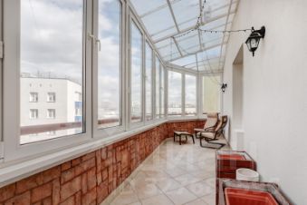 Предлагается просторная светлая квартира с ремонтом в современном стиле. Удобная и функциональная планировка: большой холл, кухня-столовая, гостиная, три спальни, небольшой кабинет, ванная комната и гостевой су, а также большая крытая терраса и два балкона. Квартира укомплектована мебелью и необходимой бытовой техникой, готова к проживанию. Из окон открывается вид на зеленый двор, рядом нет больших дорог. В квартире недавно был выполнен косметический ремонт.