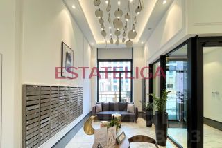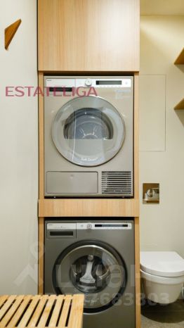 Квартира оборудована всей необходимой встроенной бытовой техникой известных брендов: посудомоечная машина, варочная панель, духовой шкаф, микроволновая печь, холодильник, вытяжка, телевизор, стиральная и сушильная машины, электрический чайник.