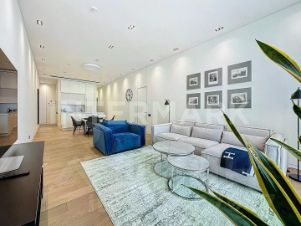 ID 46626. Просторные апартаменты с новым ремонтом и мебелью в премиальном малоэтажном ЖК Roza Rossa в районе Хамовники. Общая площадь: 128 кв. м. Планировка: просторная гостиная со столовой и кухонной зонами, две полноценные спальни, каждая со своей ванной и вместительной гардеробной, гостевой санузел в прихожей. Отделка выполнена в легком современном стиле White mood полы из дуба, отделка из молочного мрамора и итальянская фурнитура Fantini в ванных комнатах, белоснежный кухонный гарнитур немецкого бренда Warendorf со встроенной бытовой техникой Miele. Дополнительный комфорт создают многоуровневое освещение, подогрев полов, центральное кондиционирование. Апартамент полностью меблирован новой современной мебелью ведущих марок. Панорамное остекление обеспечивает прекрасное естественное освещение. Окна с повышенной звукоизоляцией от бельгийского производителя Reynaers Aluminium гарантируют полную тишину в помещении. Roza Rossa первый по-настоящему авторский проект в Москве, созданный известным итальянским дизайнером Пьеро Лиссони. Территория комплекса находится под круглосуточной охраной, имеется внутренняя территория с дизайнерским освещением и ландшафтным дизайном. Имеется одно парковочное место в подземной парковке. В ближайшем доступе огромное количество различной инфраструктуры: фудмолл "Красная роза" с огромным выбором ресторанов на любой вкус, несколько супермаркетов, а также большой выбор спортивных объектов от бассейнов до теннисных кортов. В пешей доступности несколько скверов и парков.